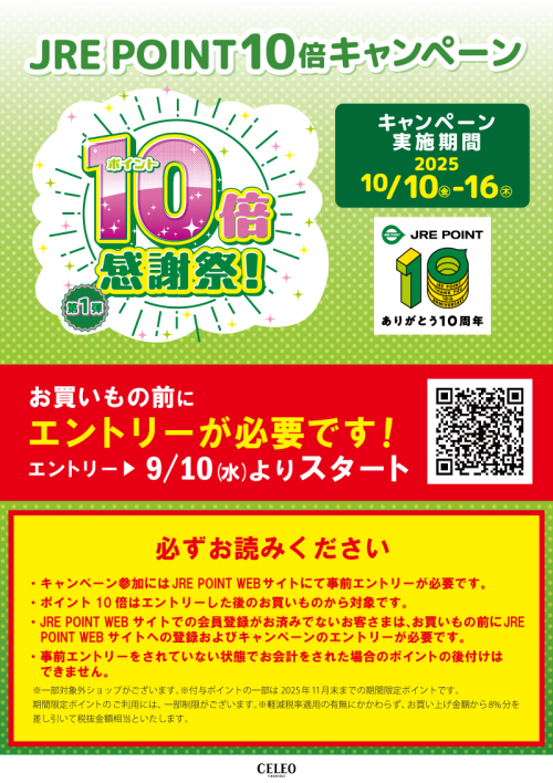 ※JRE POINT WEBサイトでの会員登録がお済みでないお客さまは、お買いもの前にJRE POINT WEBサイトへの登録およびキャンペーンのエントリーが必要です。